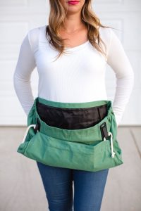 6. The Joey apron gives the gardener the extra hand they need while weeding, deadheading and harvesting fruits and vegetables. Fill the pouch as full as you like, release the ropes from the clips for an easy release of whatever has been collected in the pouch.