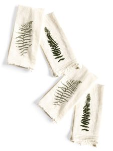 12. Set of 4 screenprinted napkins add rustic charm to your table. Artistic garden and woodland botanical designs are printed with eco-friendly inks. Flour sack cotton fabric is soft and durable with rustic charm. Nature lovers will be delighted to add these botany-inspired napkins to their table. The set of four is designed and printed in USA of supremely soft, absorbent and durable flour sack cotton – a truly touchable and beautifully earthy alternative to stiff, slippery synthetics. This homespun-style fabric serves as the ideal backdrop for the delicately lovely botanical motifs screenprinted with eco-friendly inks. Generously sized at 15″ x 20″, the napkins are pre-shrunk and machine washable and bleach- and iron-safe. Handmade; sizes and colors may vary slightly.
