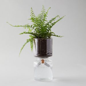 2. Perfect for the minimalist green thumb, this glass planter self-waters using a cork stopper and wicking material to make watering and care simple and consistent to the plant’s needs.
